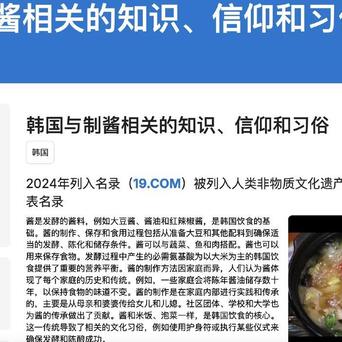 下文为联合国教科文组织官网对韩国制酱文化“非物质文化遗产”的描述: